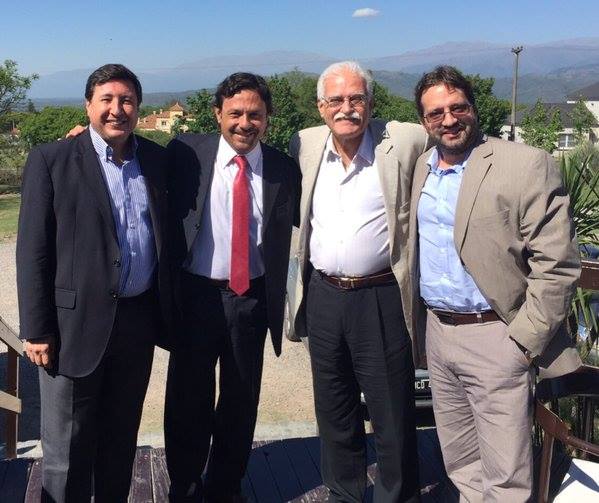 Gustavo Sáenz encabeza una comitiva en el centro Cívico Municipal que incluye a dos economistas: Marco Lavagna (hijo del ex ministro de Economía Roberto) y Aldo Pigananelli. A ellos acompaña también Daniel Arroyo.