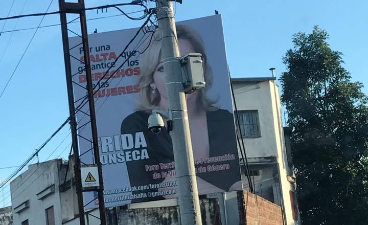 «Por una Salta que garantice los derechos de las mujeres» reza el slogan del cartel que la concejal por el PJ Frida Fonseca colocó en la vía pública.