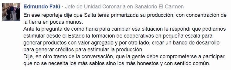 Edmundo Falú, precandidato a diputado nacional por el Frente Popular, aseguró que el “haría riqueza si o si” en Salta. “Somos exportadores de materias primas y con grandes tierras. Los minerales se los llevan. No tenemos una banda de desarrollo con créditos aptos para estimular a las pequeñas y grandes empresas. Hay que empezar a dar proyectos a cooperativos pequeños,” dijo a FM Noticias.