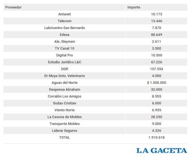 Consultado por LA GACETA, el 19 de diciembre, día en que la jefa comunal hizo pública la denuncia, Rodolfo Antonelli aseguró que cuando dejó Moldes quedó firmada un acta con la entrega de toda la documentación. “Dentro de esa documentación había un listado de cheques a proveedores, entre esos la boleta de la luz y el agua, con la orden de pago correspondiente para pagar al día. Pero no sé por qué la intendenta no pagó. Los cheques están ahí, con la plata correspondiente en el banco”, dijo.