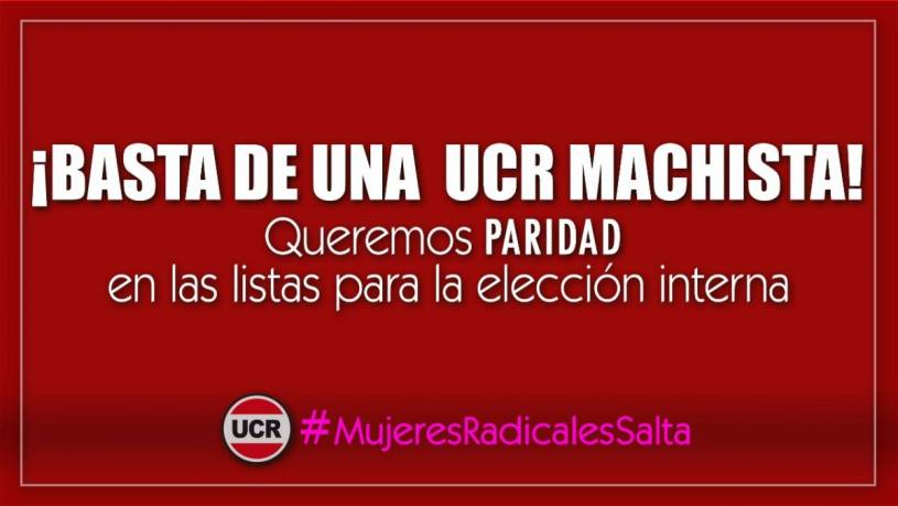 La argumentación que ostentas las mujeres radicales salteñas se basa en un amplio porcentaje de participación femenina en el padrón interno, pues el 60 por ciento estaría compuesto por mujeres, que a su vez son quienes realizan “la militancia territorial y de base”.
