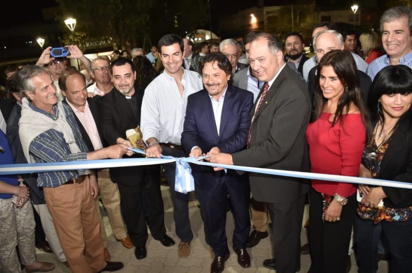 La noticia sobre la compensación de los 300 millones de pesos tras la quita de los Fondos de la Soja, alegraron al intendente Gustavo Sáenz durante la inauguración de la Plaza Árabe.