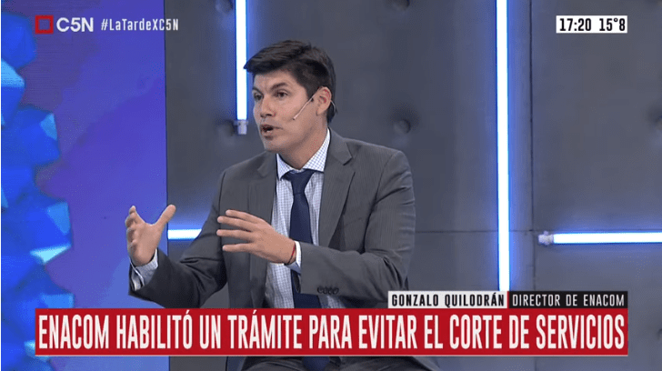 El director del Ente Nacional de Comunicaciones (ENACOM), Gonzalo Quilodrán, estuvo presente esta tarde en los estudios de C5N y llevó tranquilidad a los argentinos.