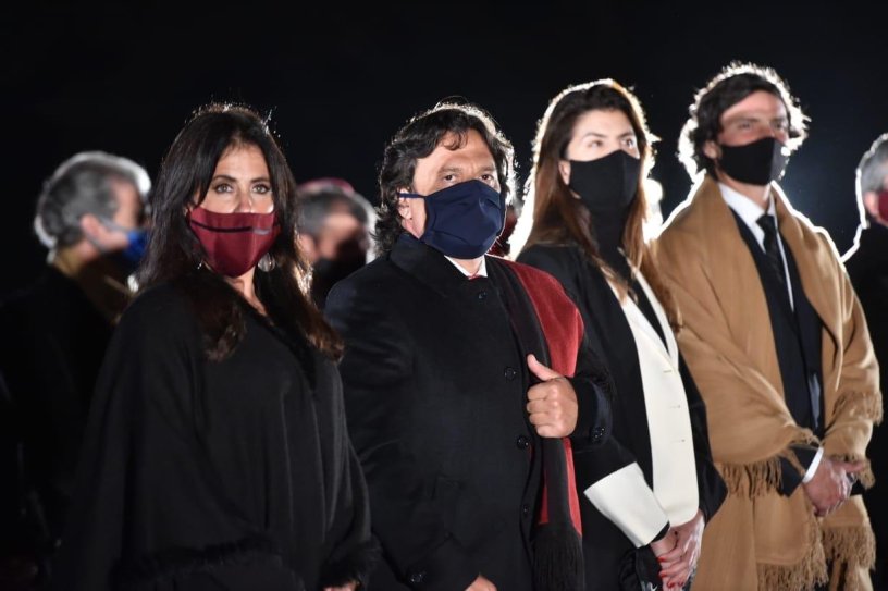Manteniendo la tradicional costumbre salteña, Gustavo Sáenz participó de la guardia bajo las estrellas junto a Bettina Romero, recordando al Héroe Gaucho