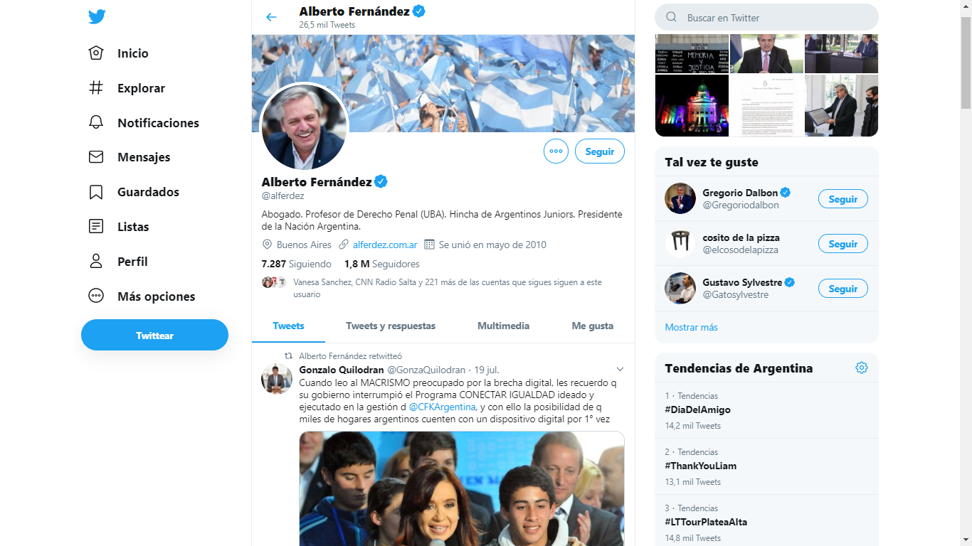 El director del ENACOM y referente del Frente de Todos, Gonzalo Quilodran realizó un ‘hilo’ en twitter para defender las políticas de conectividad implementadas por el gobierno nacional y cuestionó duramente al macrismo por su desinterés en la materia. El presidente Alberto Fernández lo compartió.